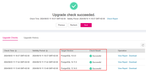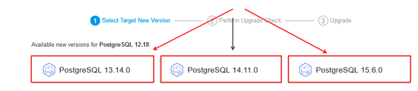 - Upgrade ohne Cutover: Sie können damit die Dienstkompatibilität einer neuen Version testen. Das Upgrade einer Hauptversion kann zu Problemen mit der Dienstkompatibilität führen. Ein Kompatibilitätstest wird empfohlen. Nachdem der Test bestanden wurde, können Sie ein Upgrade im Cutover-Modus durchführen. Ein Upgrade ohne Dienstumstellung hat keine Auswirkungen auf die ursprüngliche Instanz.